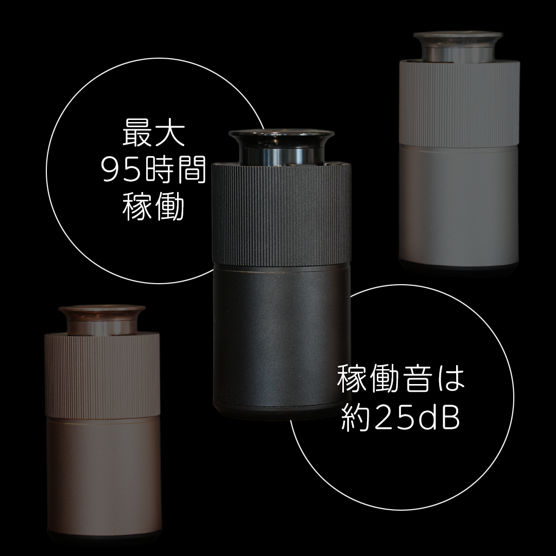 寝室やデスクでも音を気にせず、香りのある空間を楽しめます。
