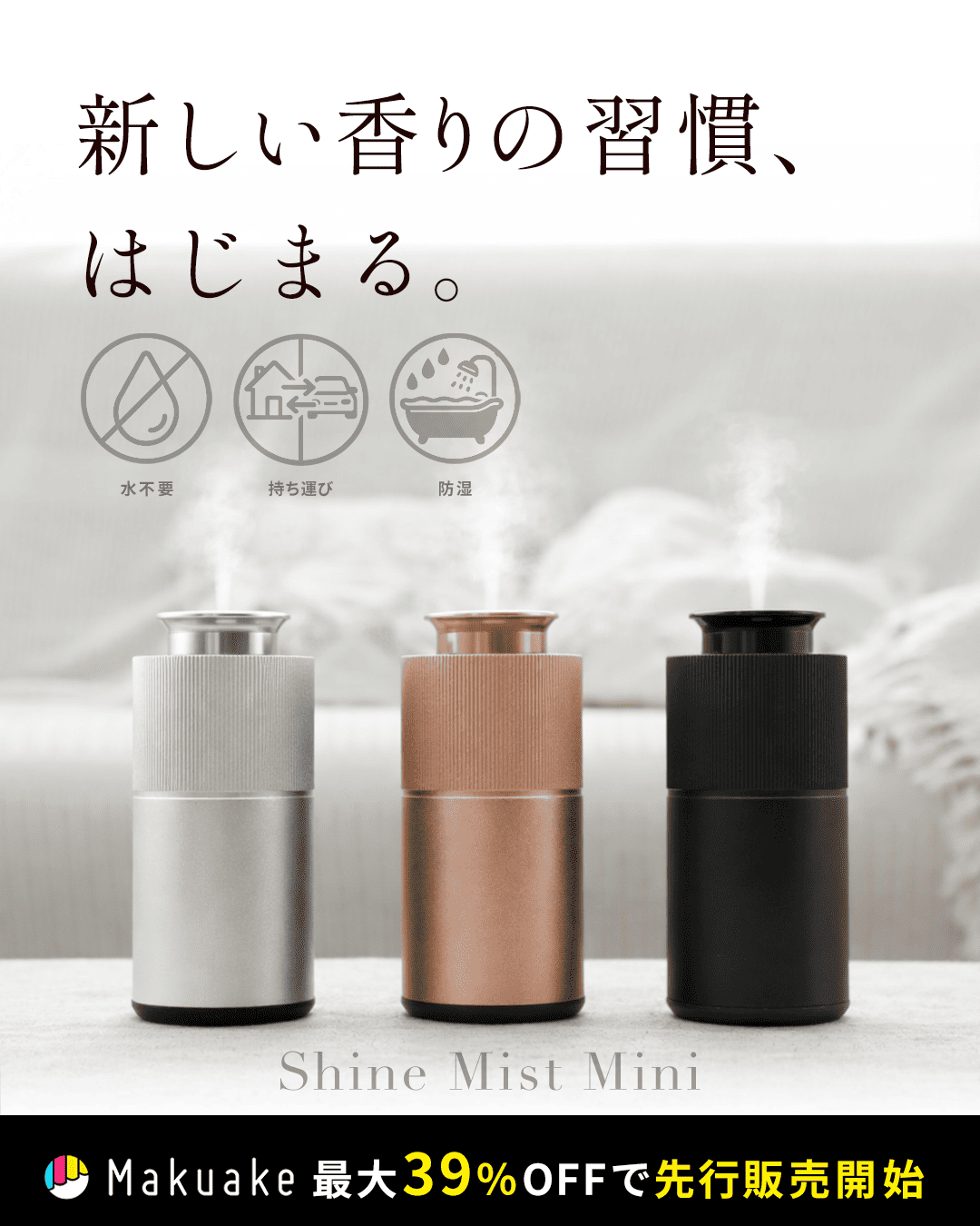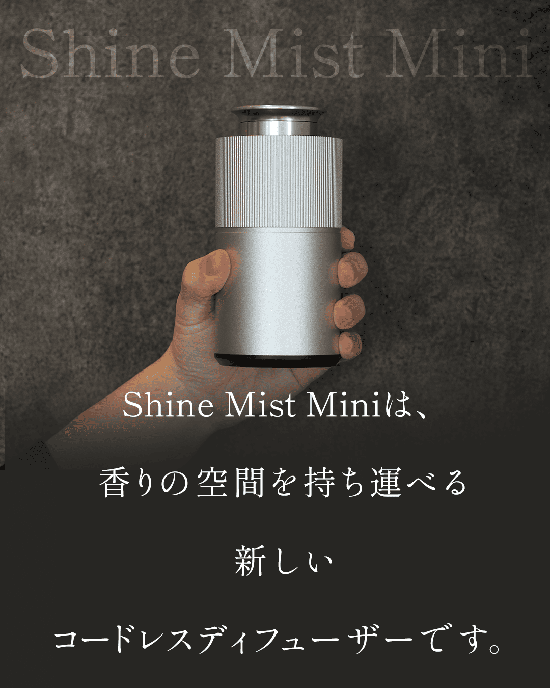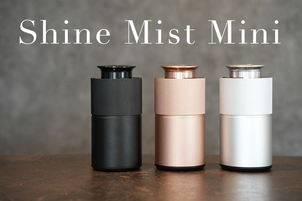 Shine Mist Miniは、水を使わないネブライザー式を採用。エッセンシャルオイルをそのまま微粒子にして拡散するため、香り本来の豊かさを楽しめます。