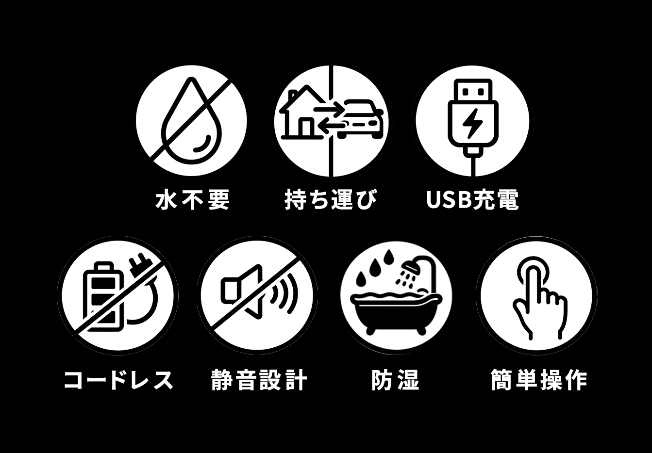 水を使わないためカビや雑菌が繁殖しにくく、清潔に使い続けやすいのも特長です。